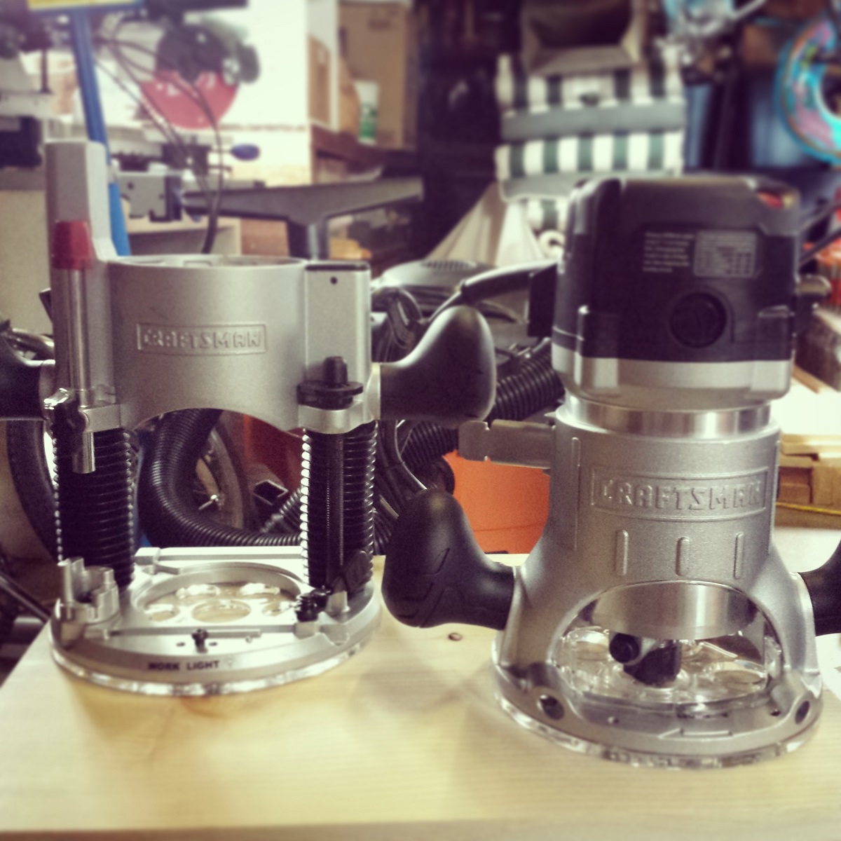 Now that my saw was cutting square the only thing holding me back was a router. While I didn’t know what style of frame I wanted, I knew that I wanted to salvage the clear plastic and backing of the existing frames if possible. This would require rabbeting the inside edge of the frame, and without a router or even table saw, would be quite difficult. A router has been on my list of tools to get, but I just didn’t feel like spending an extra $200-$250 for the ones I wanted. Then, as if being guided from above, I just so happened to end up at Sears, checking out some grills. “Might as well check out the tool section while I’m here,” I thought to myself (the worst part is that I also answered with a “Yes… yes you should.”). I moseyed over to the table saws and found myself next to the routers. Out of the corner of my eye I noticed a pretty decent looking Craftsman fixed base/plunge base combo unit. It had the features I wanted (2hp, soft start, 1/4″ collet and 1/2″ collet, variable speed, edge guide, vacuum adapters, etc.), but it also didn’t have a price tag. Considering that all the other ones I had been pricing out were in the $225 range, I figured this would be the same. No salesmen were around so I brought out my phone and checked it out on Sears.com. I plugged the model number in and found it for $109. This had to be a typo so I double checked. Sure enough, it was on sale, marked down from $213. I grabbed the package, walked up to the counter (I envision that I walked, I’m pretty sure I may have skipped all the way up there) and paid for my new toy.