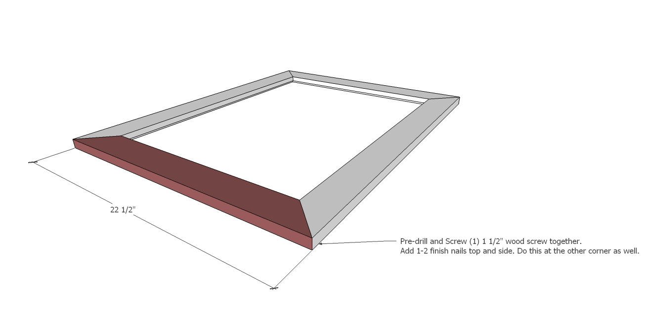 - (2) 1×2 @ 24” mitered cut @ 45-degrees (trim top and bottom)