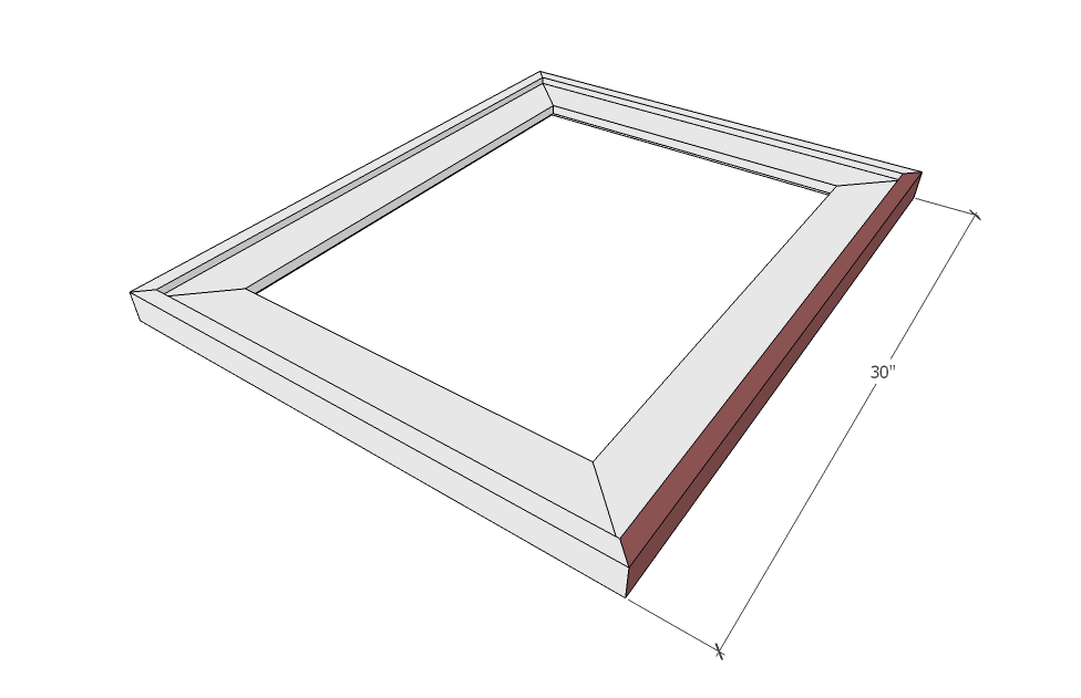 - (2) 1×2 @ 30” mitered cut @ 45-degrees (trim sides)