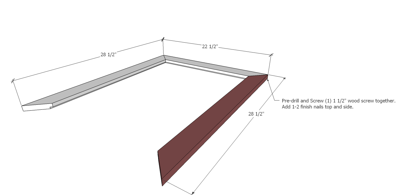 - (2) 1×3 @ 28 ½” mitered cut @ 45-degrees (frame sides)