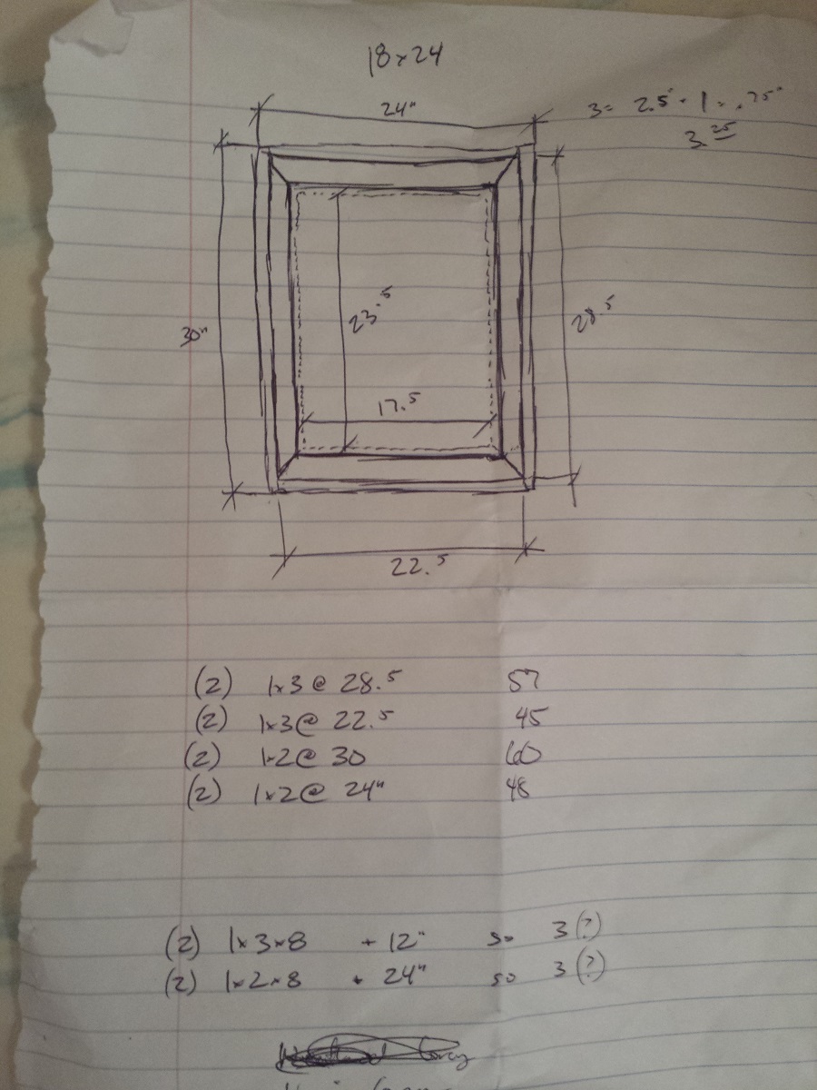 Cut List (What I cut for a single 18”x24” frame):