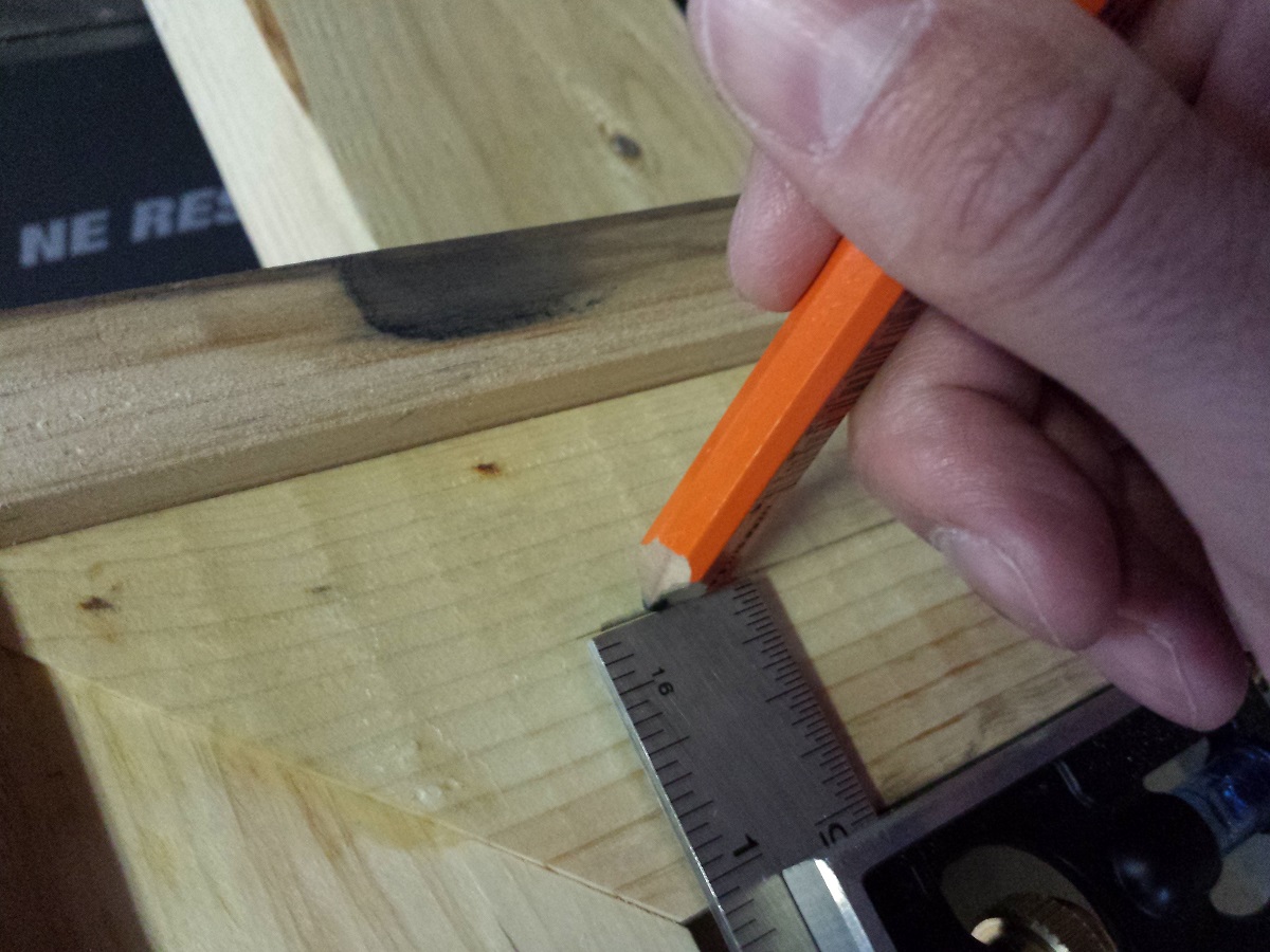 I wanted the mounting brackets to be angled so I broke out my combination square to ensure a 45-degree angle for no other reason than I wanted it at a 45-degree. Yes, I am that anal.