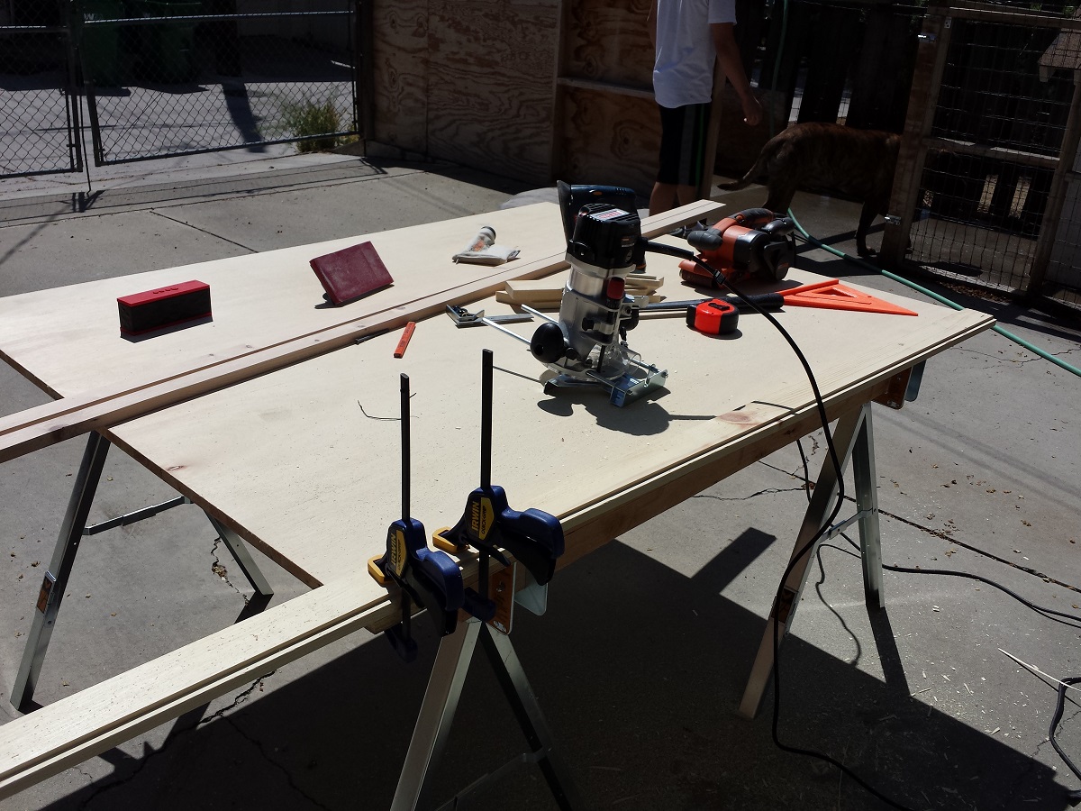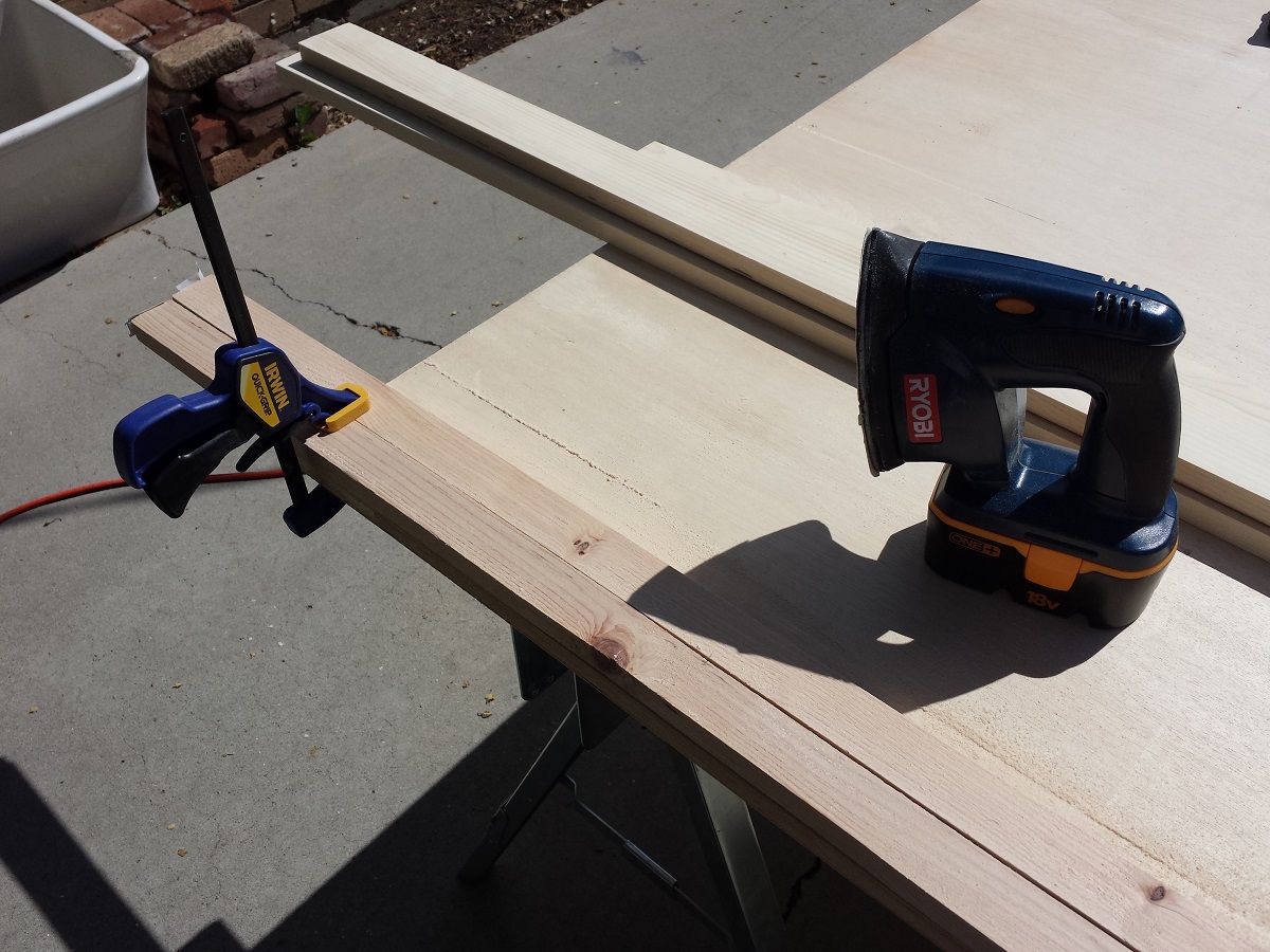 The picture below isn’t from this project, but I sand the edges of multiple boards the same way. Again, it saves me time, and when I use my belt sander, I can get the boards to an even size quickly (I don’t have a table saw or jointer).