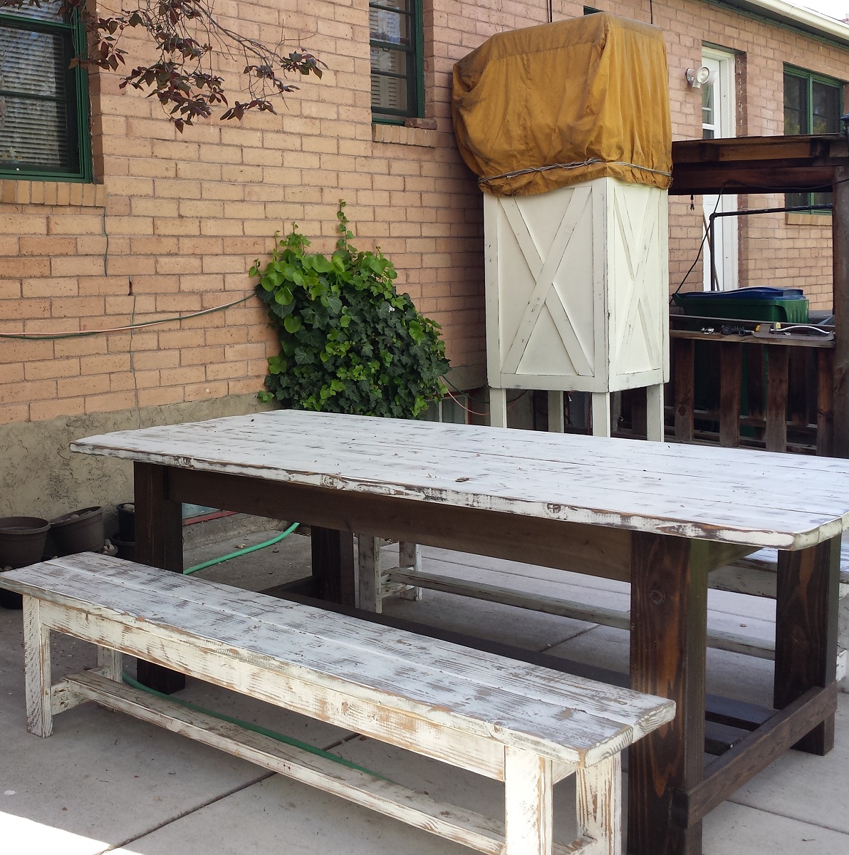 Our swamp cooler stand was definitely on the top of her list. Living in a desert climate, residential cooling is a huge desire for most. The only problem is we have an older home with no central heating or air, still running baseboard heat in the winter and a swamp cooler in the summer. On the plus side, because Nevada is so dry, swamp coolers can work wonders, and they do so much cheaper than AC. We’ve had a swamp cooler for many years, but it in the 7-8 months of the year when cooling is not needed we want access to window that the swamp cooler is. Our solution for the last 10-years or so has been a very large stand composed of a 2×4 base with some plywood for strength that I frustratingly move back and forth in the Summer and Fall (before you ask, I didn’t build it). It was never designed to move (technically I don’t think it was designed to last 10-years either, but you know…) and it’s an eye sore. As soon as Liz heard that I had completed most of my project list, I- not so subtly- was informed that we needed a new swamp cooler stand. “It’s ugly” she said, “and it doesn’t match the furniture in the backyard.”