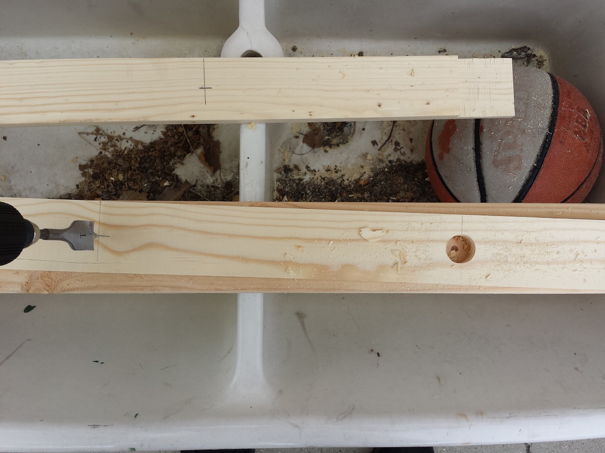 *NOTE: If you did not create a half-lap notch be sure to drill the holes in the 41” boards, not the shorter 38 ½” boards.