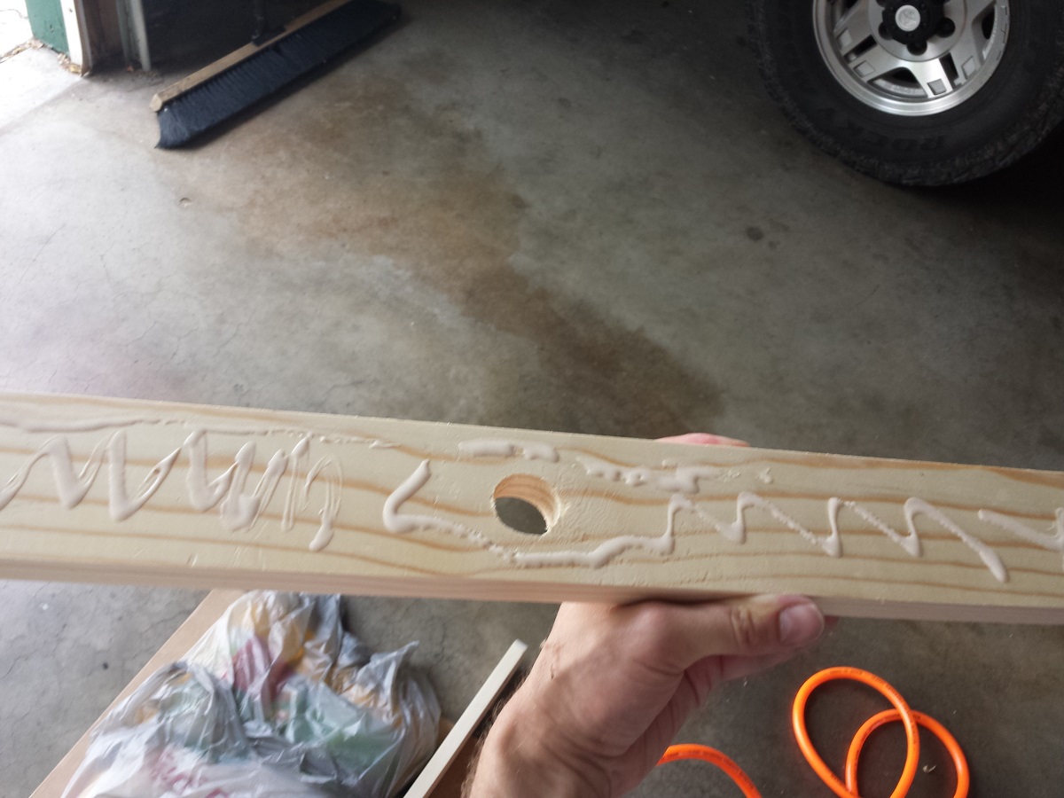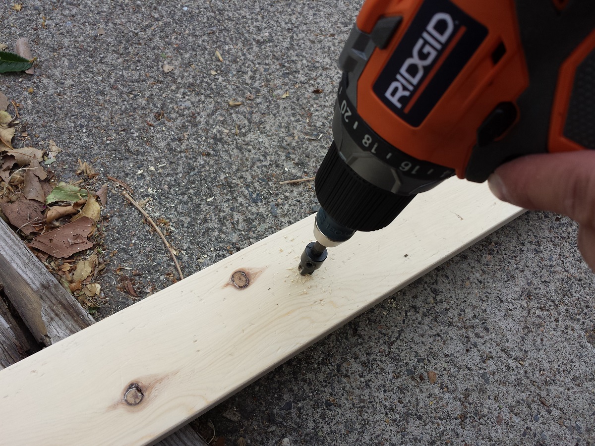 Above on the left you can see me drilling through the center. On the right I decided to flip the ladder side over and counter sink for my screws.
