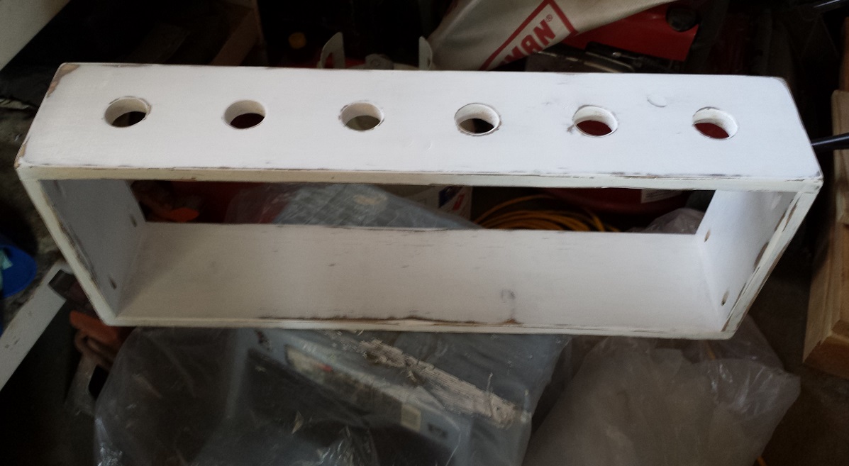 This is actually the second one of these I’ve built. I built this one as a Christmas gift for my mom who had some very nice ceramic wine bottles she had been saving so she could do something with them. As soon as I showed her some pictures of the centerpiece I made for our house, she immediately said “That’s what I’ve been looking for!” I modified the plans from Shanty-2-Chic in order to get 6 large wine bottles to fit. This is a very easy build.
